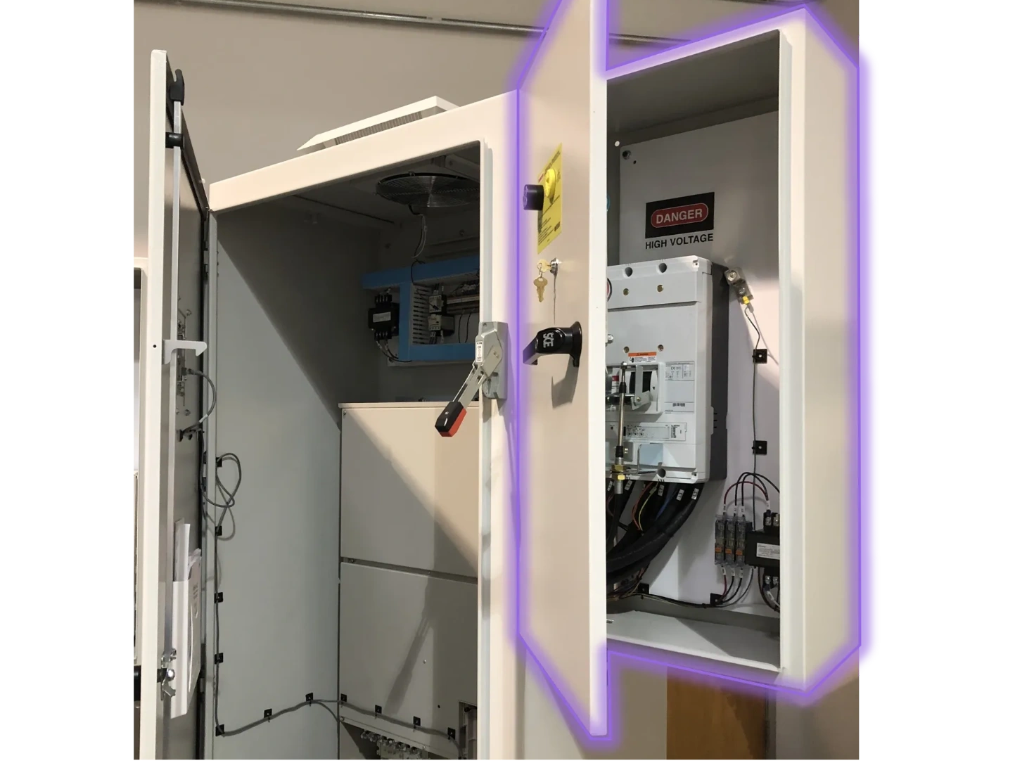 Pre-engineered design to remote mount the main breaker with a cable connecting the ACPAK enclosure. A VariSafe by Panduit non-contact voltage detector is mounted on the door of the enclosure for visible and touch-point verification of voltage.
